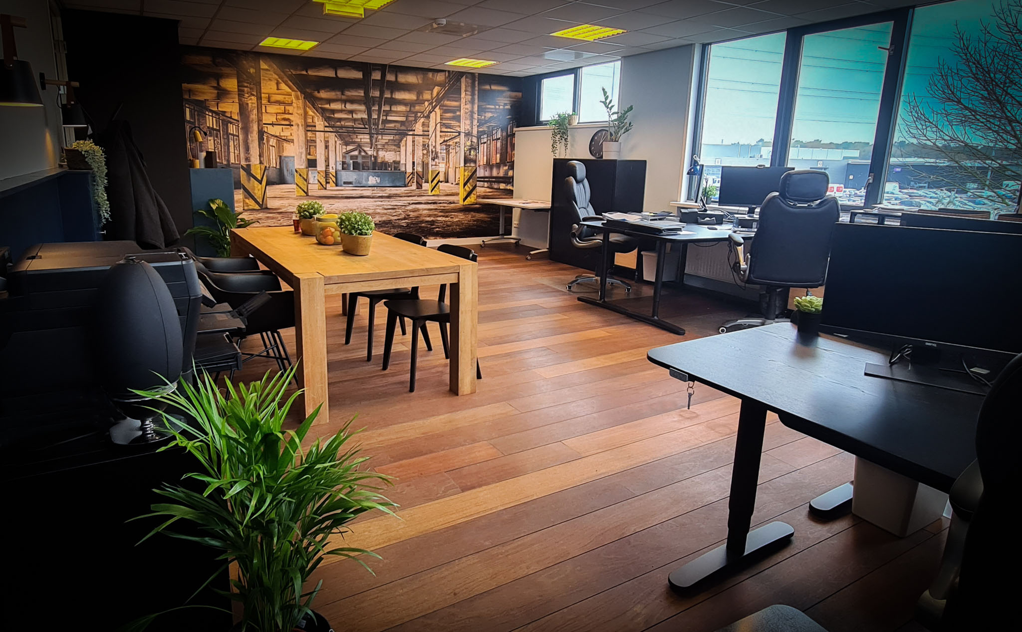 Van een ruimte met koude stalen platen naar een behaaglijk kantoor. Isolatie, afwerking, zonnepanelen, alles is gedaan om dit kantoor tot een fijne werkplek te maken.