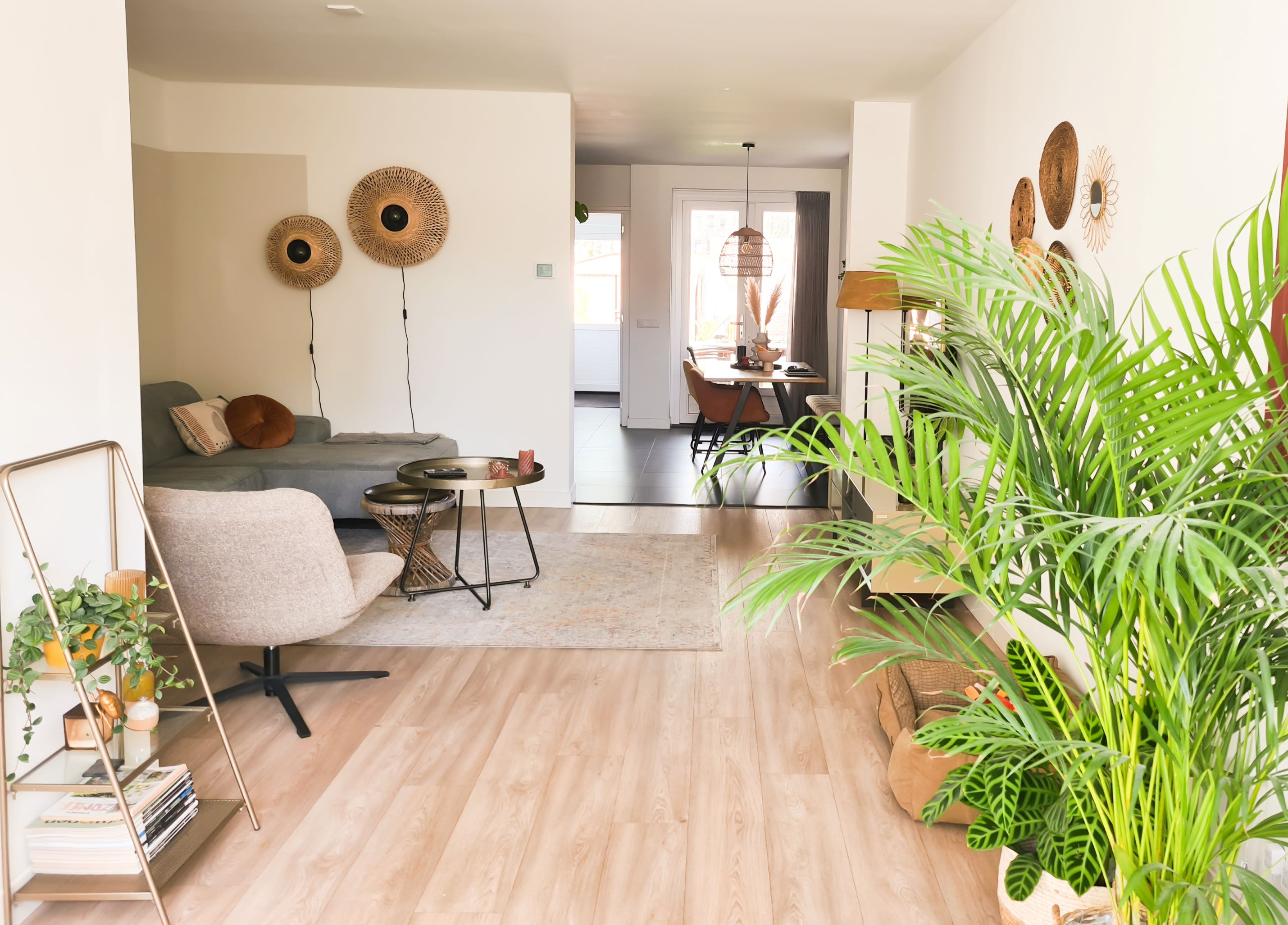 Waar eerst de keuken was, is nu extra ruimte bij de woonkamer aangetrokken en een mooie zithoek van gemaakt.